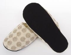 大きいサイズのスリッパをお探しの方へ メンズLサイズの日本製スリッパです。 一筆書きのようにつながったうずまきの刺繍が特徴的 麻混素材でナチュラルな雰囲気のスリッパです。 ソフトタイプなので足の動きに合わせてよくしなり、 パタパタとした音も出ません。 手洗いができますので、いつも清潔にお使いいただけます。 カラーは ベージュ、ブラックの2色からお選びください。 底面は黒のスナメ素材。 サイズ:メンズLサイズ外寸約28cm 日本製 スナメの説明